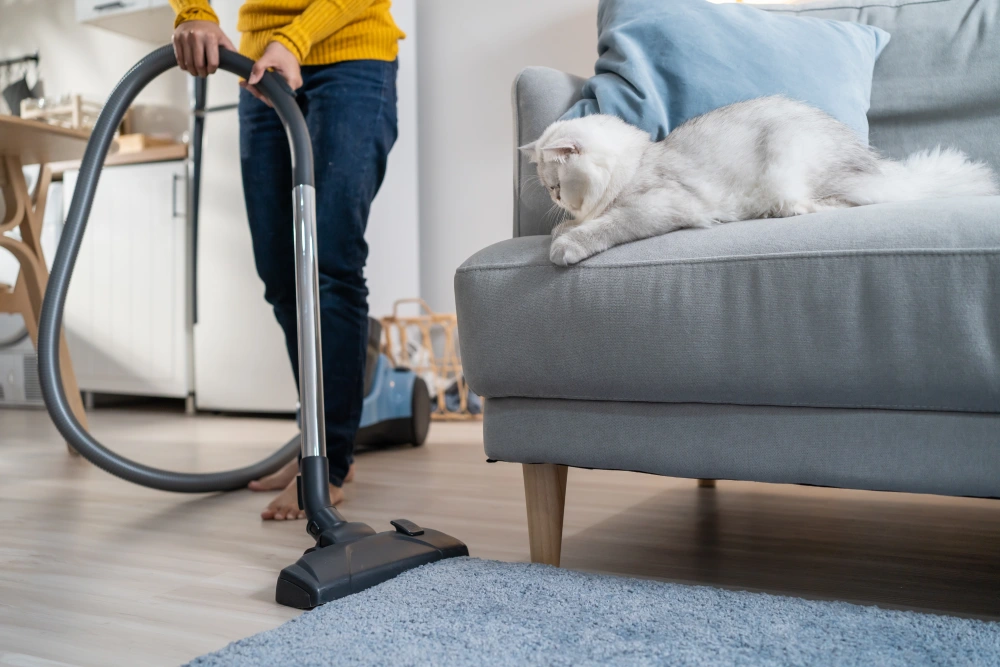 Deep cleaning starts with some important steps. If possible, find a temporary place for your pet to live for two days. The time your pet spends away from home will reduce the amount of fur you need to clean up.