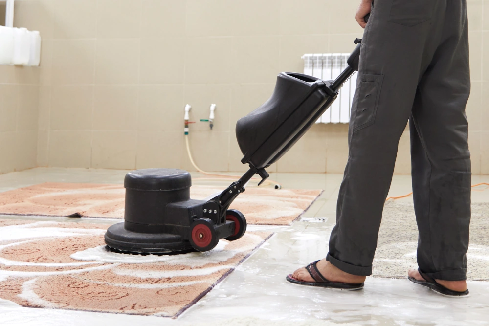 Bonnet cleaning uses a spinning pad soaked in a cleaning solution to scrub carpet surfaces. It removes surface dirt quickly, making it popular in hotels and offices. However, it doesn’t clean deeply and may leave residues, making it less effective.